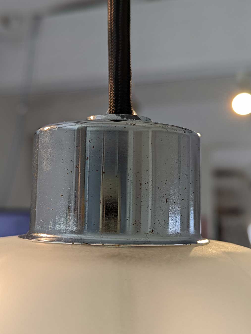1980年ぐらいに作られた6灯の日本製シャンデリアのガラスシェードをリメイクして、ペンダントライトにしています。